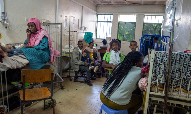 Nella cittadina di Nekemte, ovest dell’Etiopia, riferimento per un’area di oltre 5 milioni di abitanti, 400.000 persone ne hanno accolte 150.000. In città c’è un ospedale di 250 letti, fatiscente, congestionato da una infinità di mamme e bambini, ammalati ovunque per terra, su cartoni, letti e barelle scassati, equipaggiamenti inesistenti o fuori uso, acqua e luce a tratti, personale demotivato e stanco.
